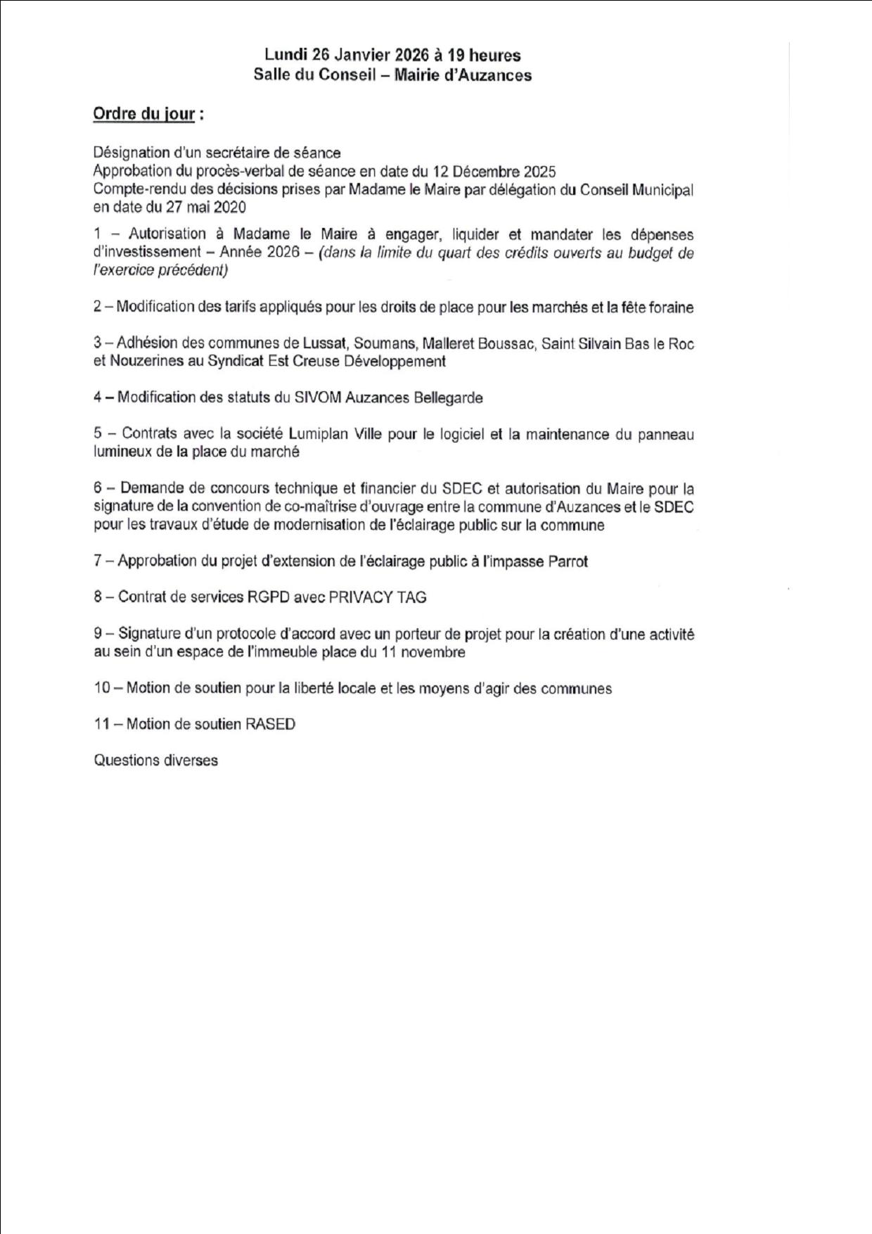 CONSEIL MUNICIPAL Lundi 26 Janvier 2026