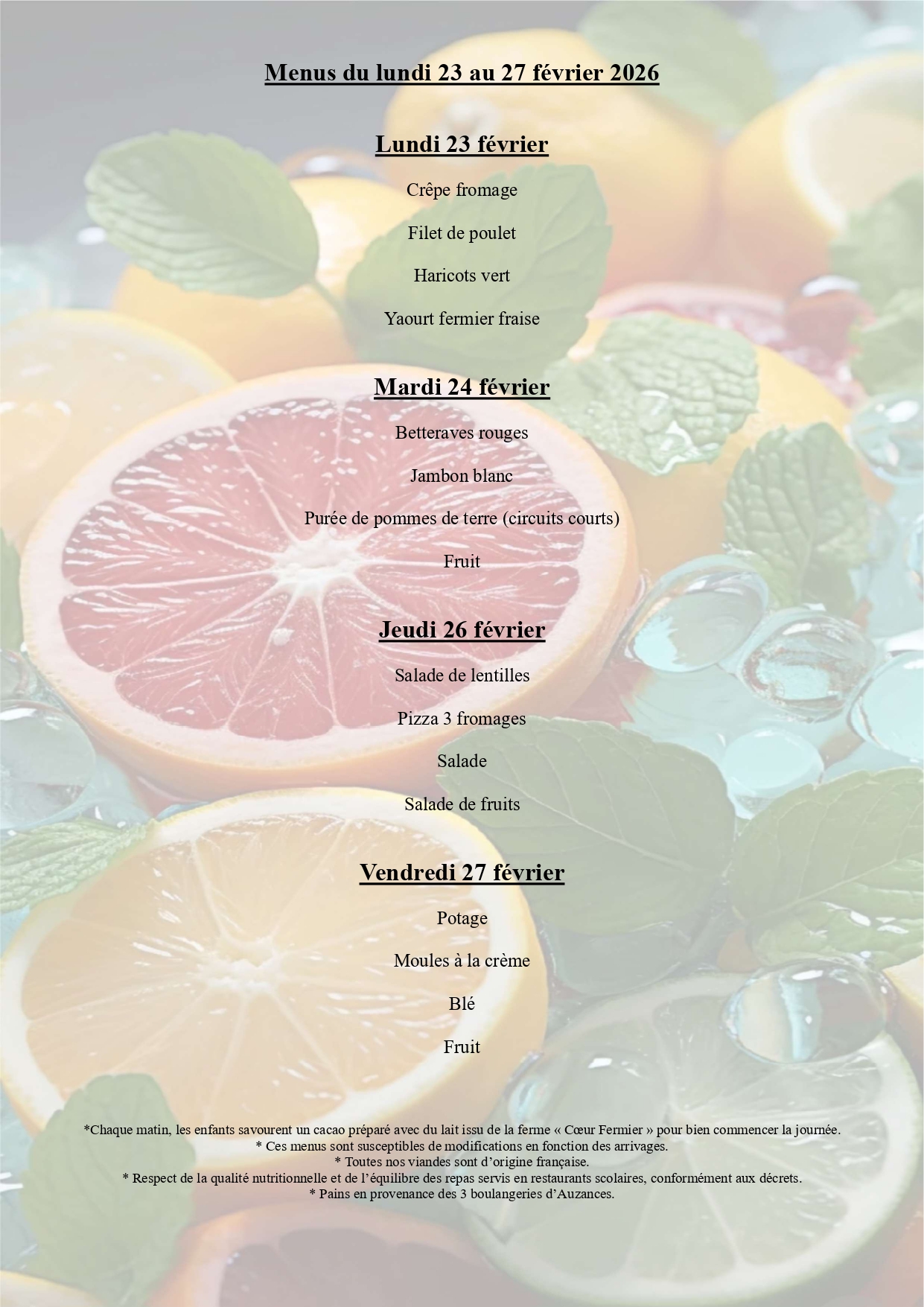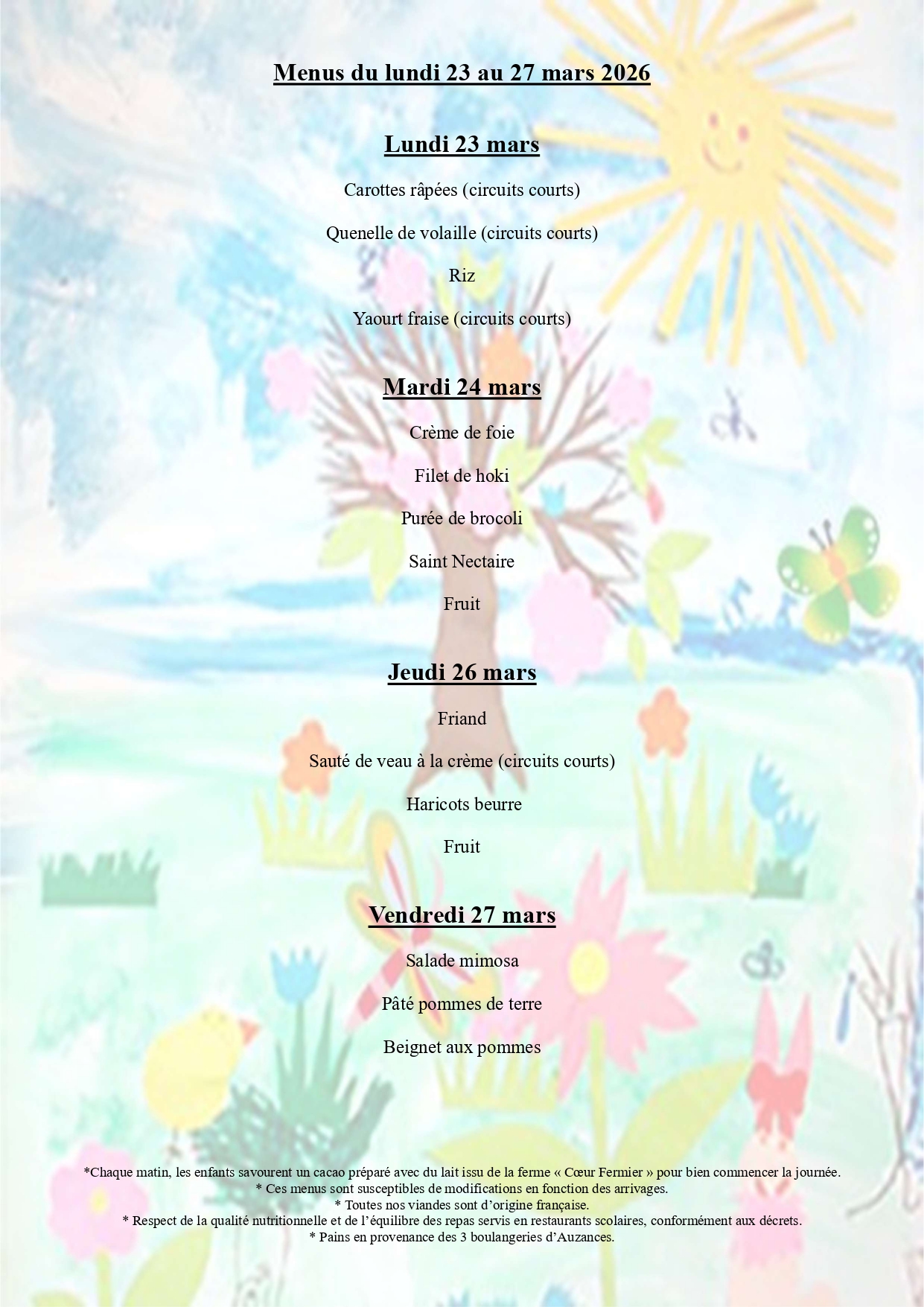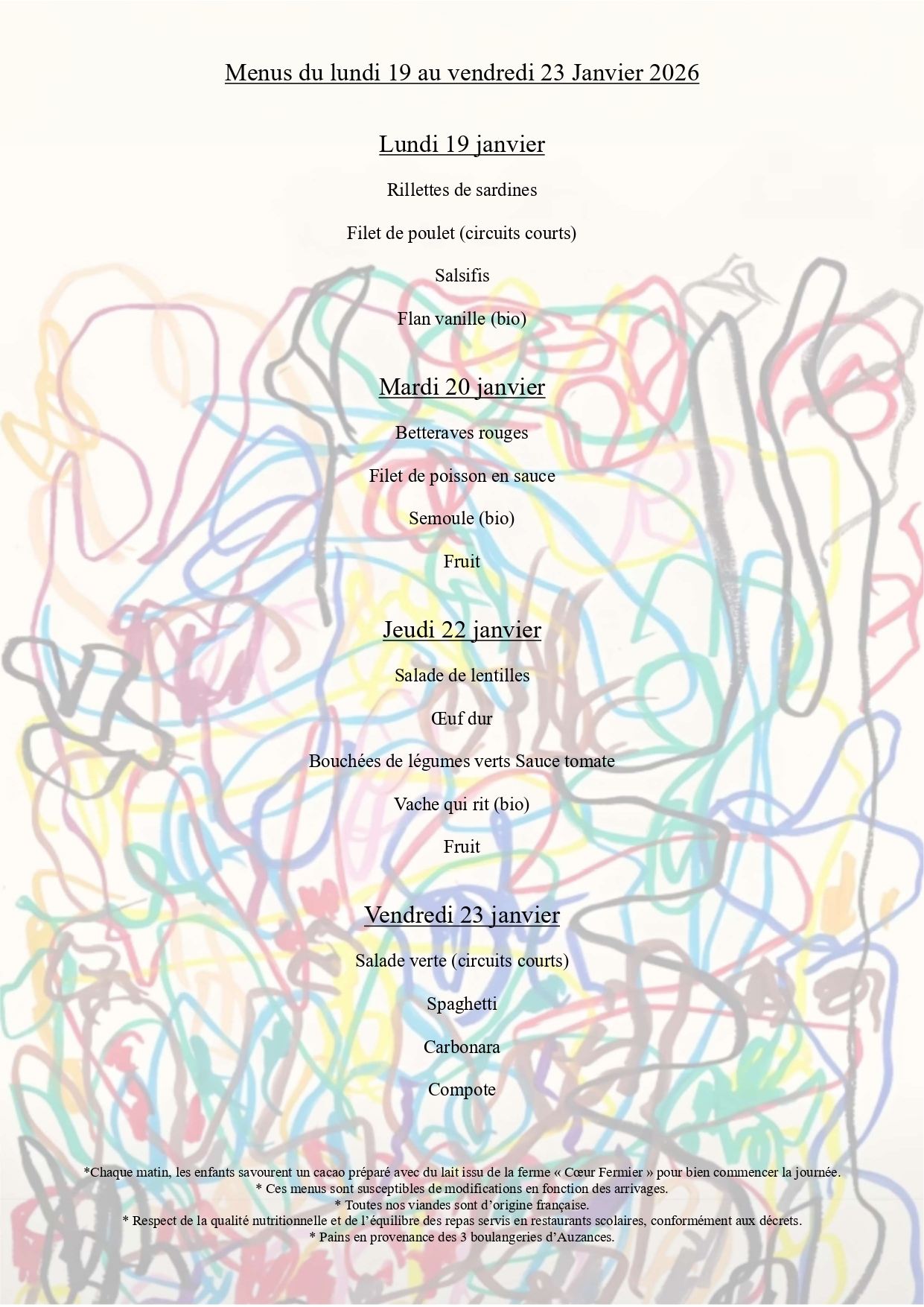 Menus Cantine scolaire