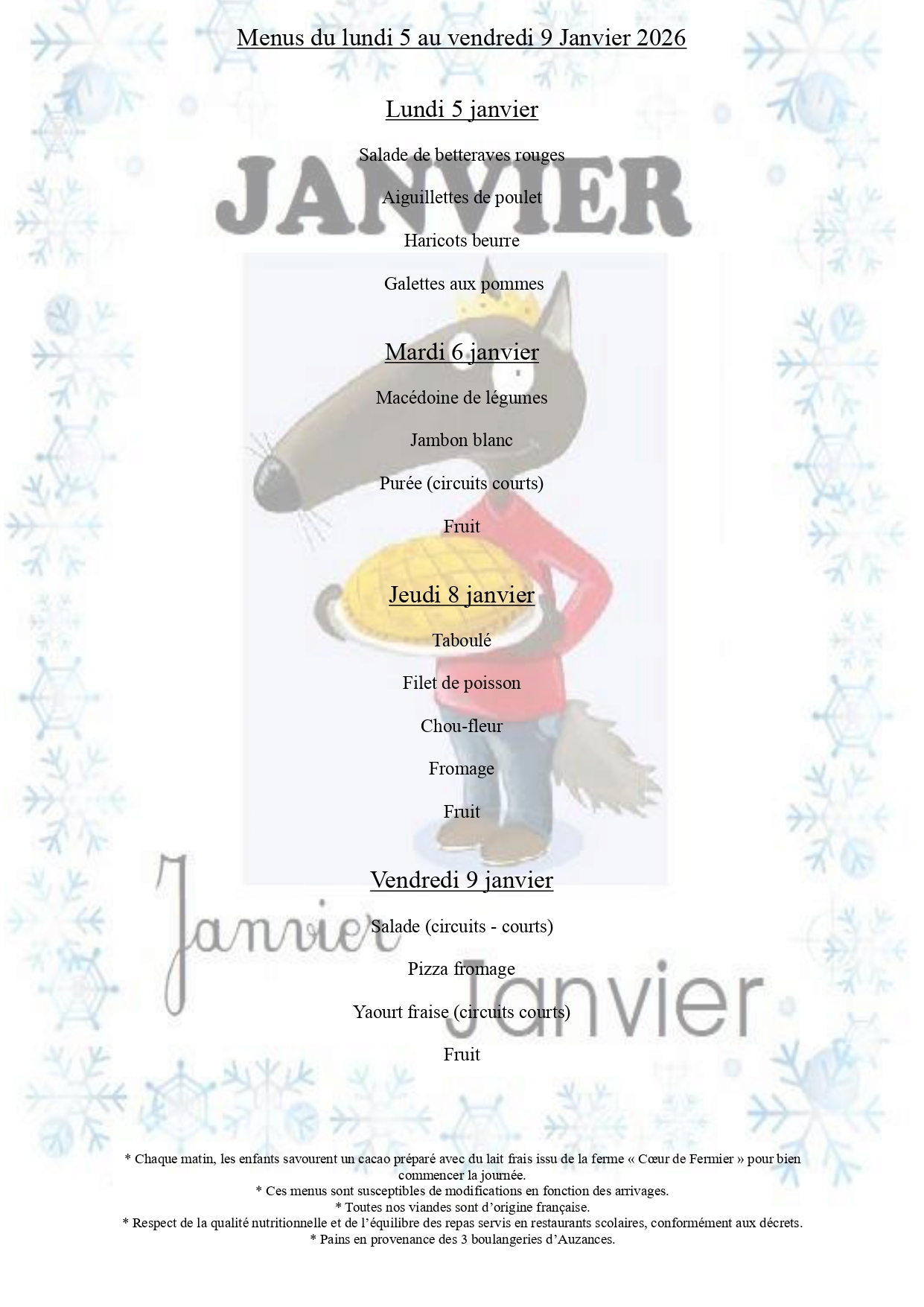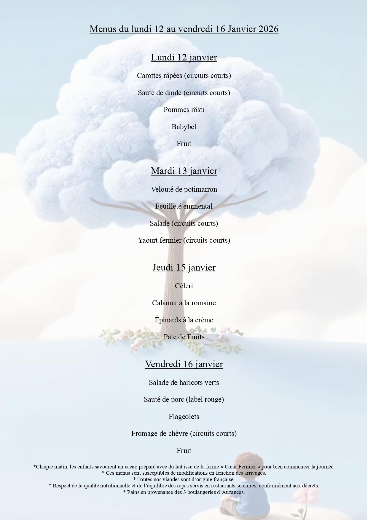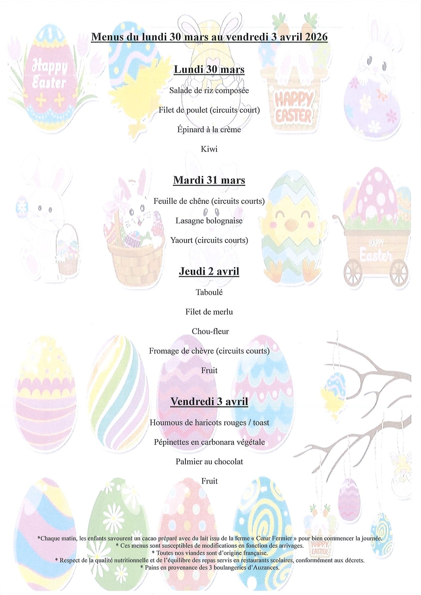 Menus Cantine scolaire